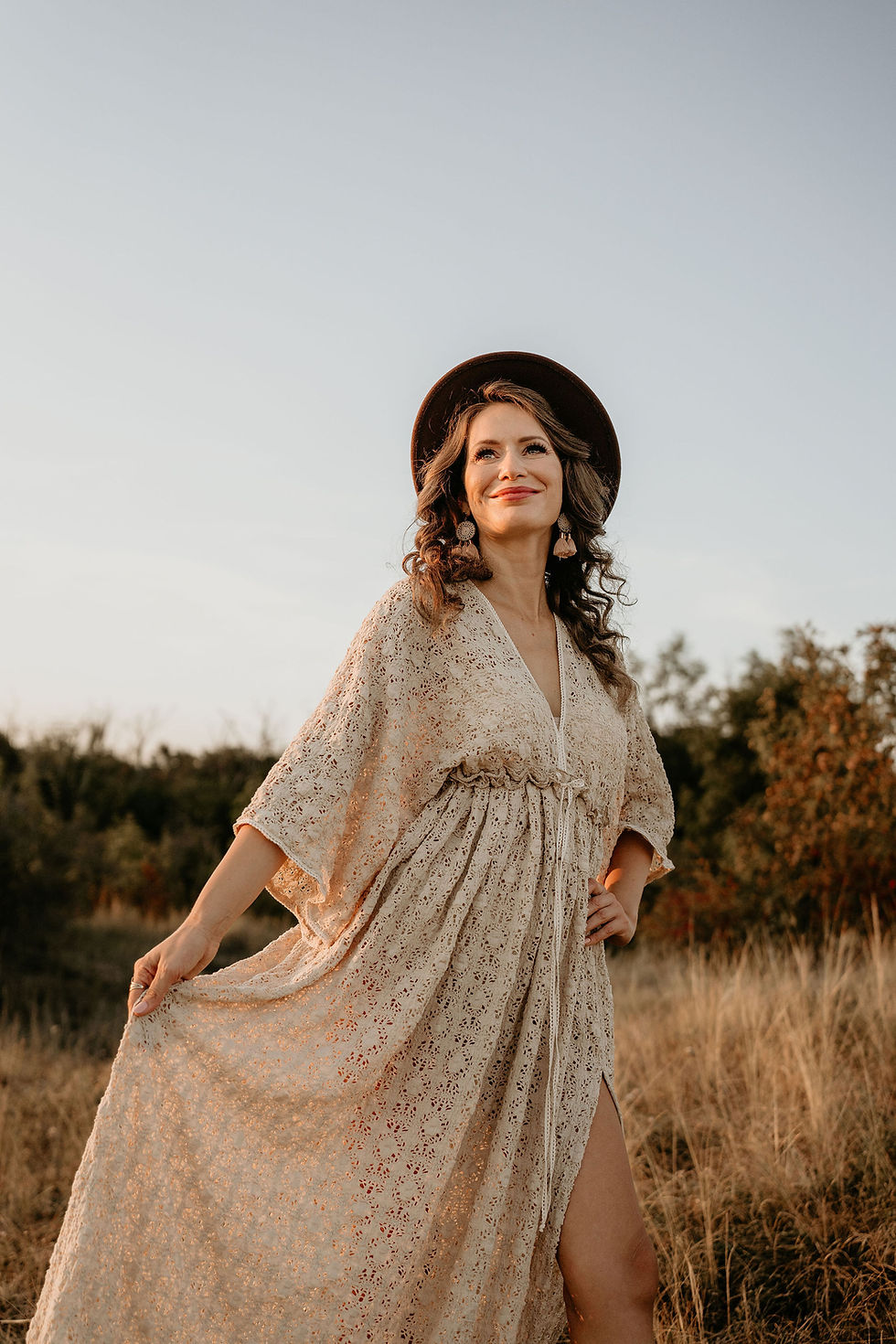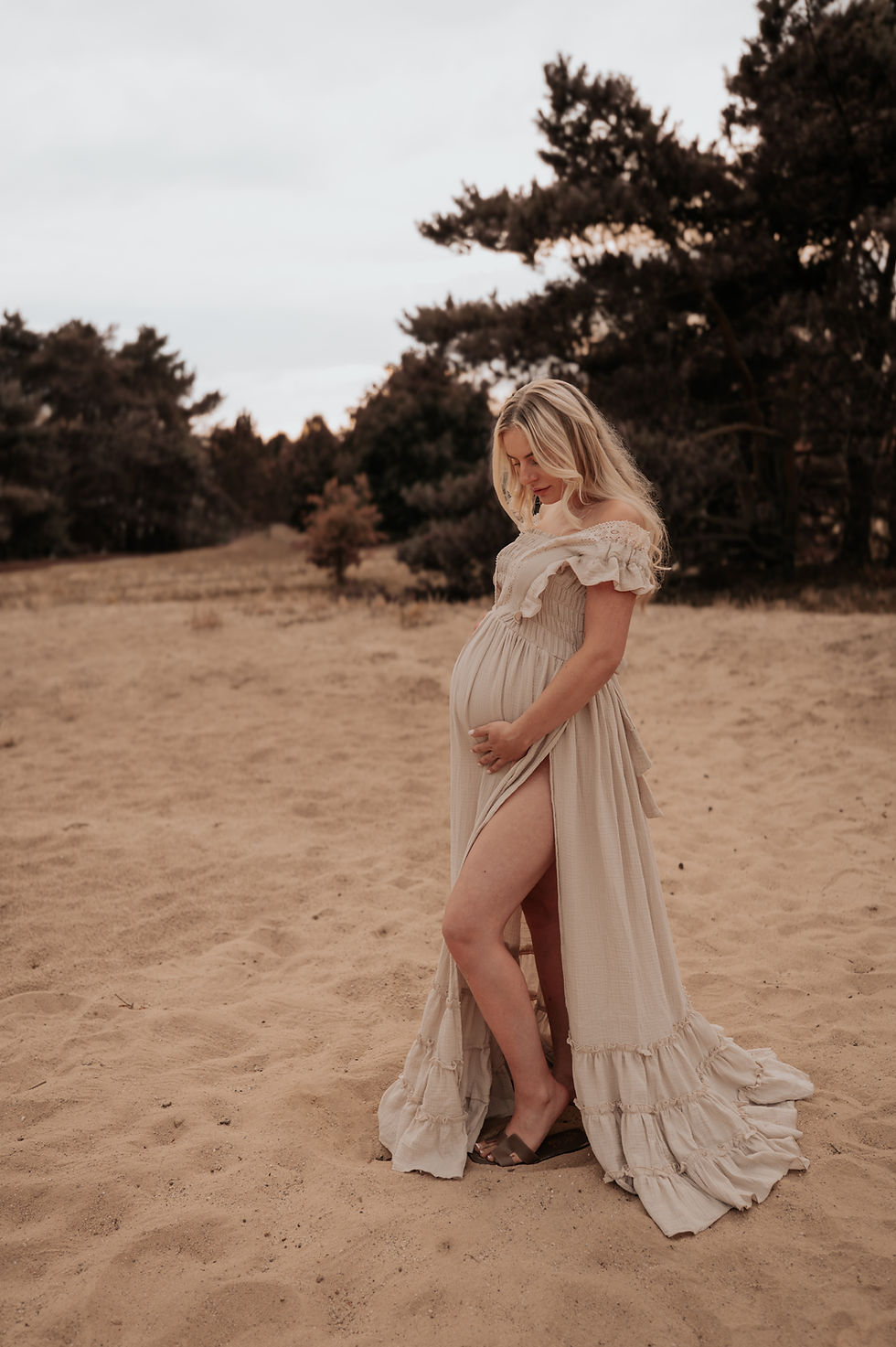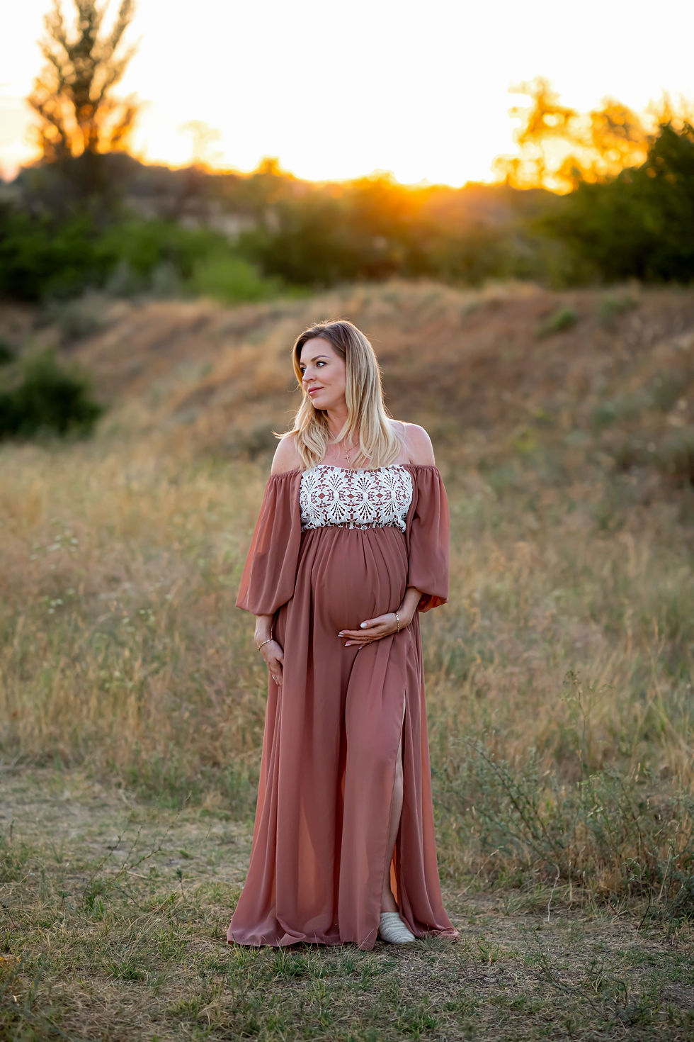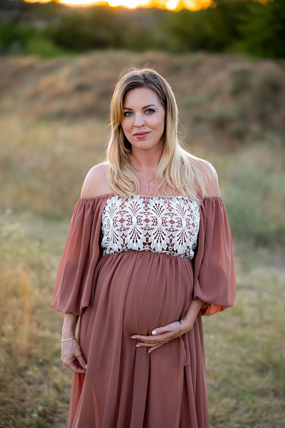Bohemian lace maternity gown made of soft and stretchy cotton lace.